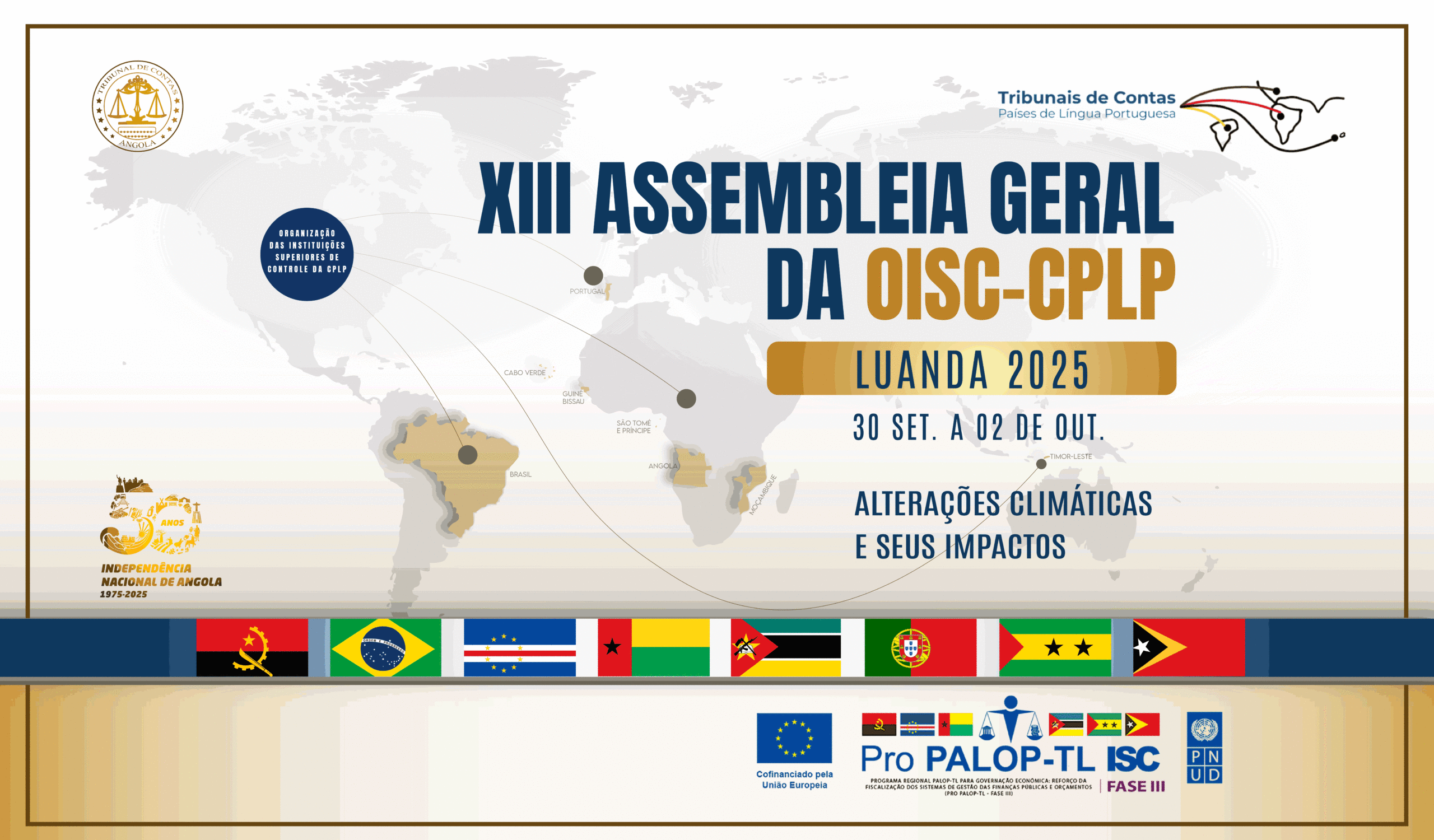 No Hotel InterContinental, Luanda, Miramar entre os dias 30 de Setembro a 2 de Outubro de 2025, a XIII Assembleia Geral da Organização das Instituições Superiores de Controlo da Comunidade dos Países de Língua Portuguesa (OISC-CPLP) que decorrerá sob o lema: “Alterações Climáticas e seus impactos.”
